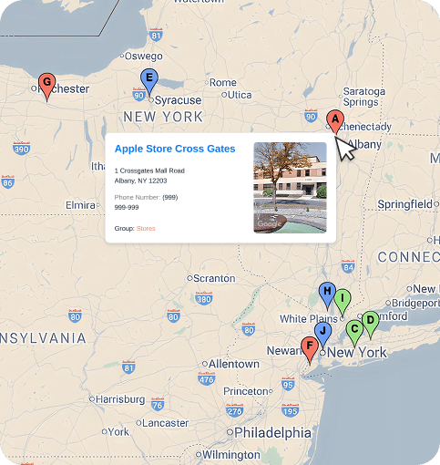 From spreadsheets, to tables in web pages, database — anywhere you can visualize a table with location data you can map multiple locations with BatchGeo. If you are starting from scratch, we recommend using our Spreadsheet Template to get started with your data, then simply copy the data over to BatchGeo to create a pin map.